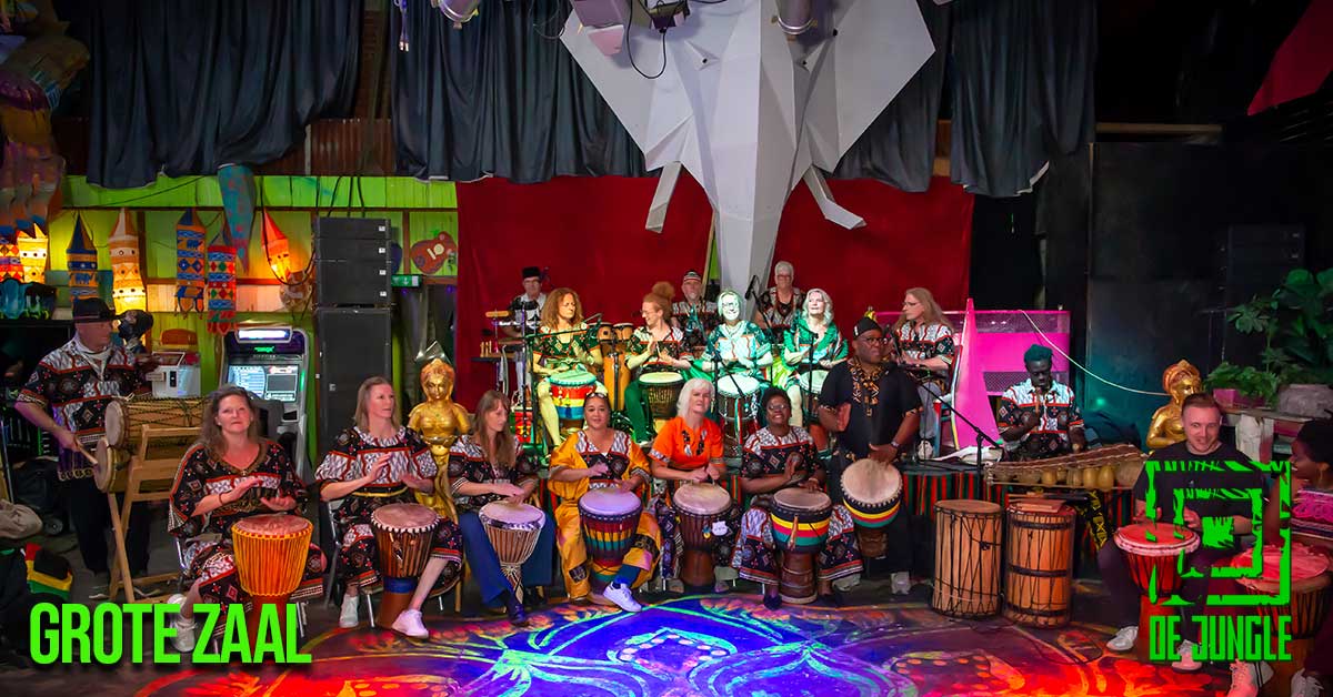 - Djembé band in de Grote Zaal in de Jungle.