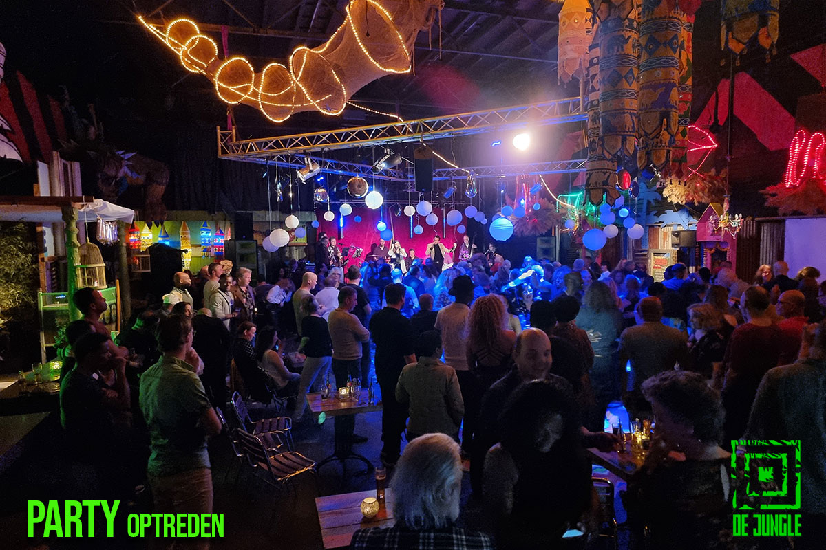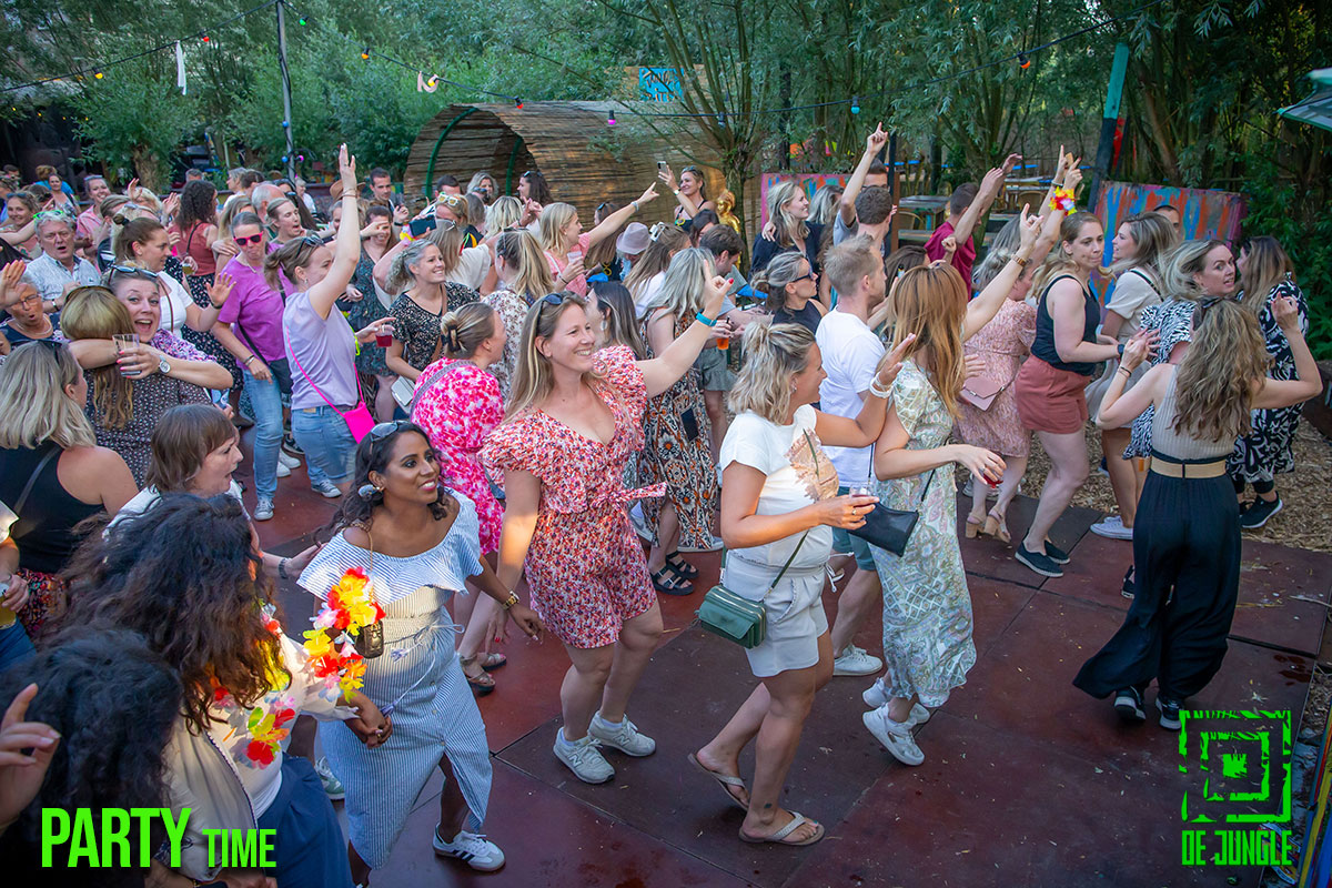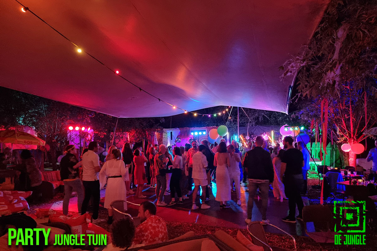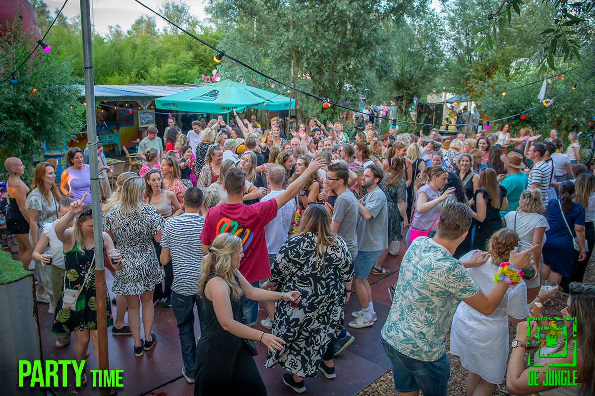 - Gezellige drukte tijdens feest in de Jungle.