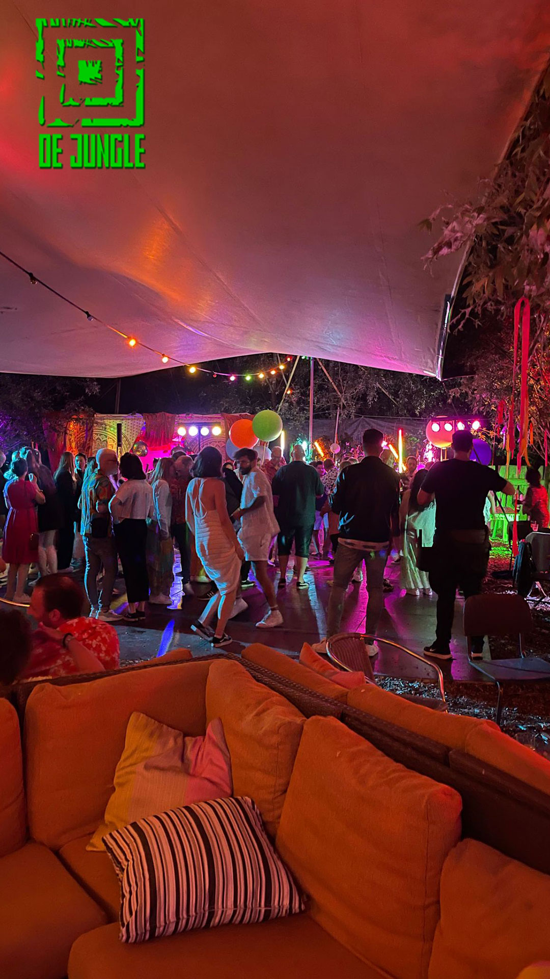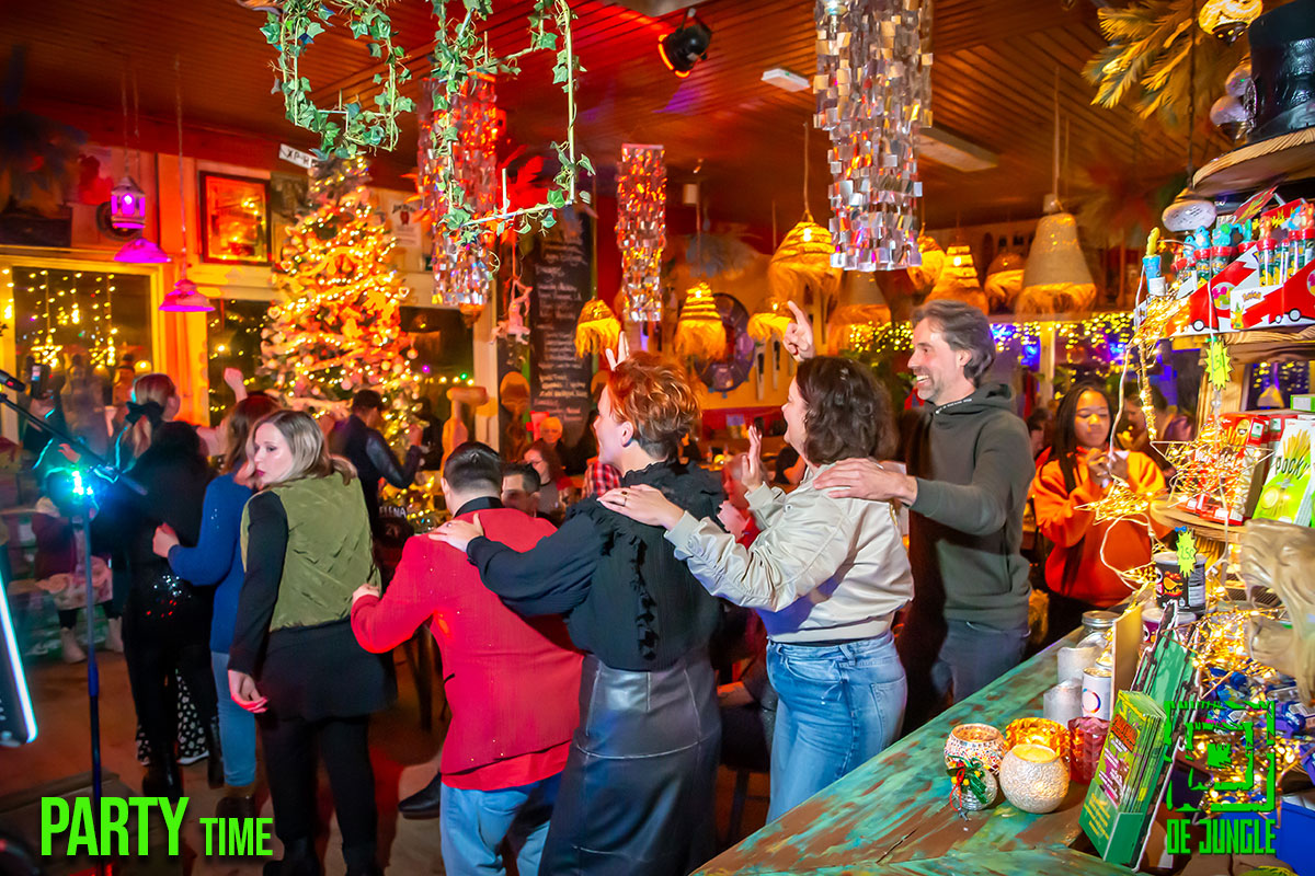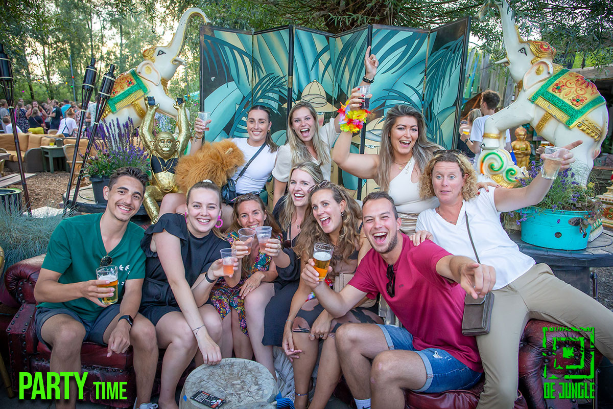 - Gezellige drukte tijdens feest in de Jungle.